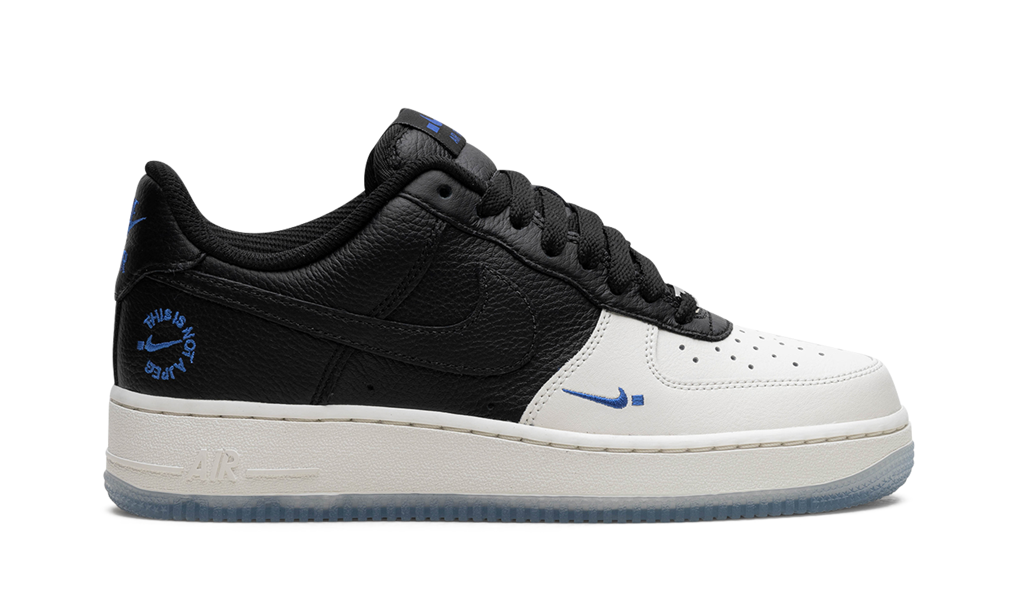 The Nike Air Force 1 Low "TINAJ" is a special colorway of the retro basketball shoe that was originally only available to members of the .Swoosh community. Made specifically for .Swoosh members who had previously bought at least one of Nike’s Our Force 1 boxes, the Air Force 1 Low “TINAJ” features a white and black leather construction with smooth white leather appearing on the toe and forefoot and black tumbled leather appearing on the mid-panel and heel. A mini blue .Swoosh logo is embroidered on the forefoot while the phrase “This is not a .JPEG” can be seen on the lateral side of the heel. A semi-translucent icy blue rubber outsole completes the look. Release date: October 20, 2023 Tinaj