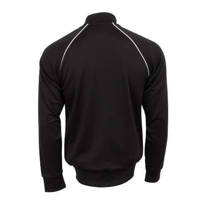- Ribbed collar and cuffs.